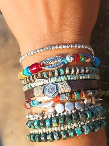 - צמיד ארוג אבני טורקיז אפריקאיות 5 מ"מ בשילוב כדורי כסף 925 4 מ"מ