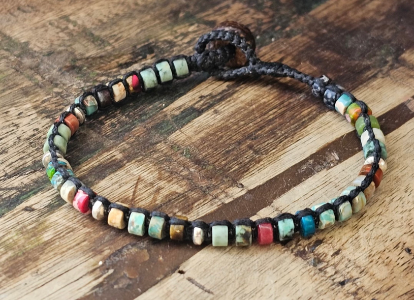 - צמיד יוניסקס אבני חן 4 מ"מ-טורקיז אפריקאי,ג'ספרים בגוונים שונים,עין הנמר,ארוג חוטי שעווה חזקים במיוחד