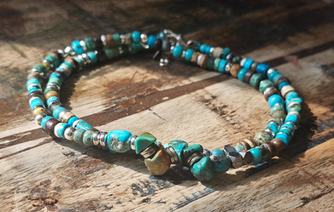 - אבני טורקיז,טורקיז היולייט,המטייט,קוקוסים,חרוזי מיוקי יפנים,אבני ג'ספר צבועות בגוונים שונים וכסף 925.סדר וסוג האבנים עשוי להשתנות