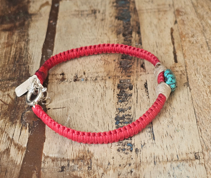 - צמיד יוניסקס ארוג חוטי שעווה בשילוב אבן טורקיז טבעית וסוגרי כסף סטרלינג 925